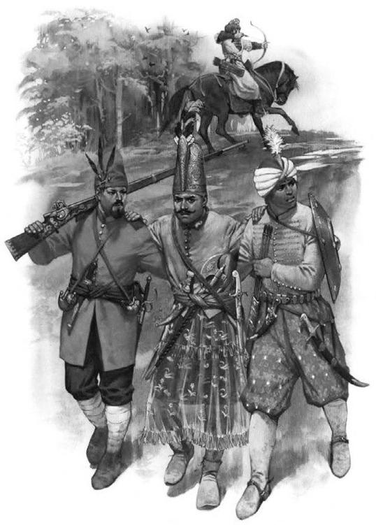 | ◎ 从左到右分别是16-17世纪的黎凡特、阿扎布和塞克班士兵。 | ◎ 阿拉伯辅军士兵(右一) |