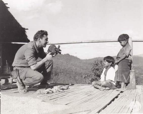 The hill tribes of Burma provide the colorful subjects that Signal Corps cameraman Sgt.Jim Grant has always dreamed about.While following the Chinese38th Div.In their fight against the Japs,he takes time out from combat shots to shoot afew feet of Kachin youngsters.Sgt.Grant is from Beverly Hills,Calif..