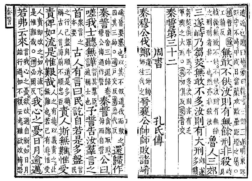 乃誓于军曰:“嗟士卒!听无哗,余誓告汝。古之人谋黄发番番,则无所过。”以申思不用蹇叔、百里奚之谋,故作此誓,令后世以记余过。君子闻之,皆为垂涕……