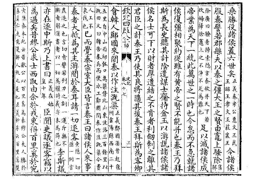 会韩人郑国来间秦,以作注溉渠,已而觉。秦宗室大臣皆言秦王曰:“诸侯人来事秦者,大抵为其主游间于秦耳,请一切逐客。”李斯议亦在逐中。