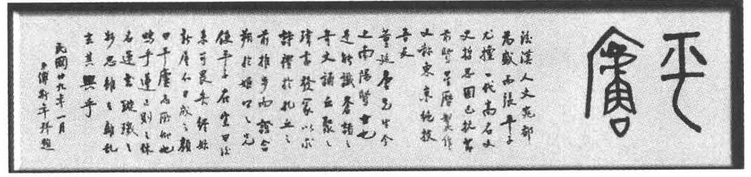 1940年,避难昆明,董作宾为自家在龙头镇皮营村的斋号取名“平庐”。五十岁后,董作宾号“平庐老人”,在书写的甲骨文书法中也常使用“平庐老人”的印章。据笔者妄臆,董作宾夫人名海平。平庐者,爱妻之心也。