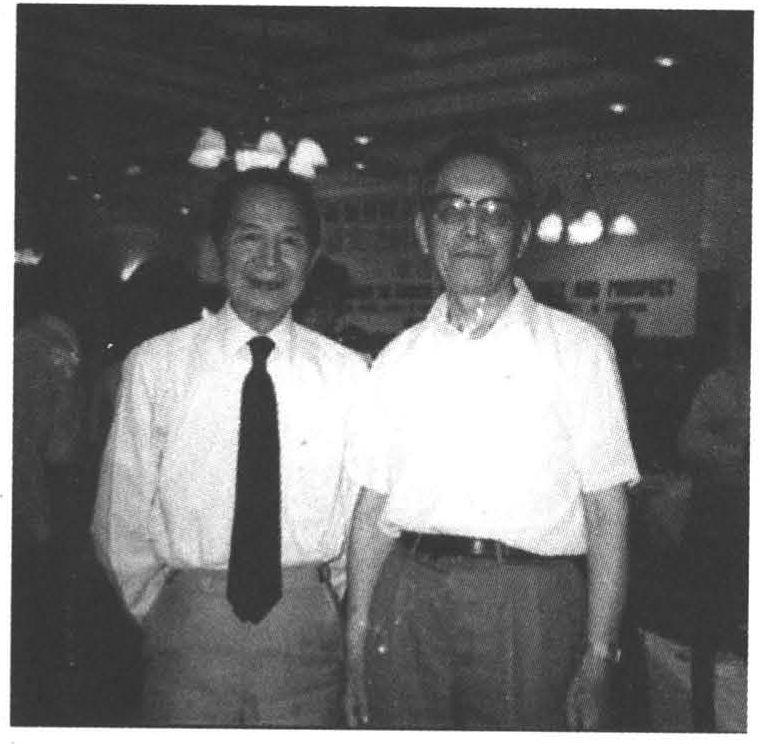 1991年原栗峰书院的北大文科研究生同学会上,王叔岷(左)、任继愈(右)合影。