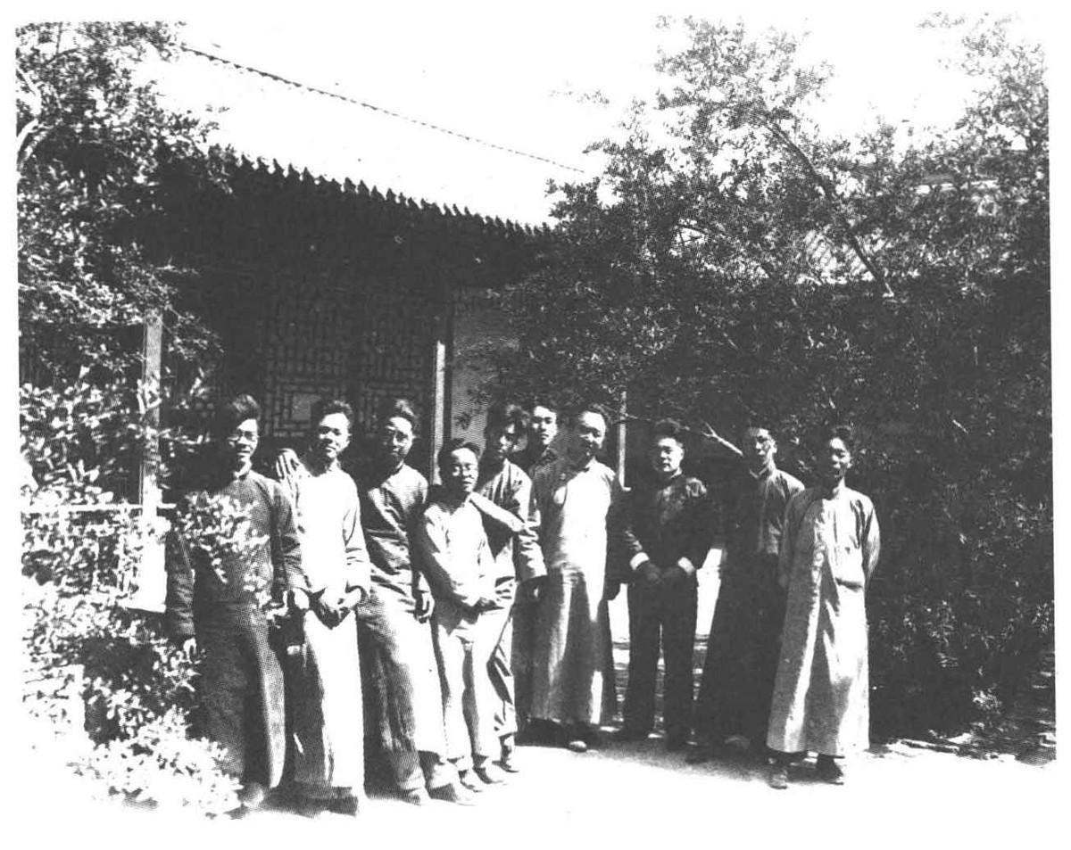 1935年春,考古组同人在安阳袁家花园合影:左起王湘、胡厚宣、李光宇、祁延霈、刘燿(尹达)、梁思永、李济、尹焕章、夏鼐、石璋如。
