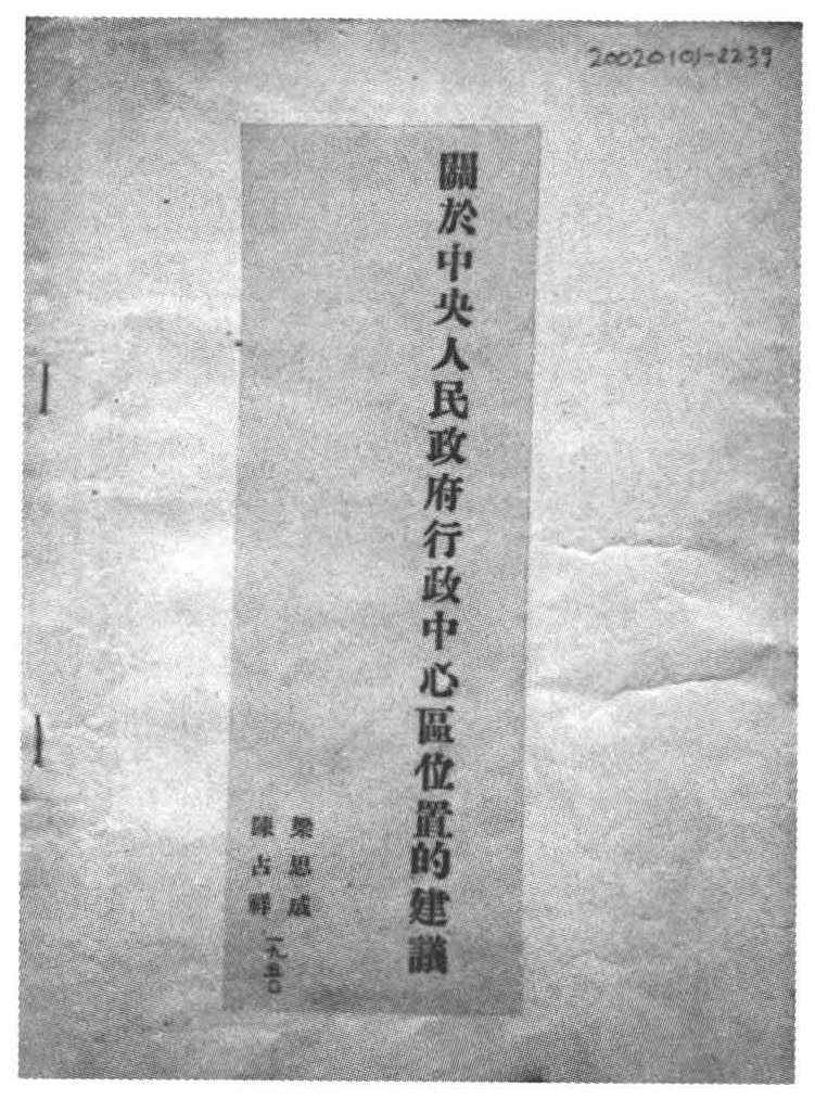 1950年,梁思成和陈占祥上书中央,建议保护古城,把中央行政中心另建在北京西郊。