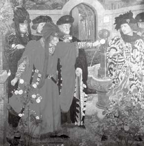 这幅名画描述了莎士比亚戏剧中虚构的关于玫瑰战争起源的场景,约克公爵与萨默塞特公爵发生争执,他们分别选择了白玫瑰与红玫瑰让支持者站队表态。作者:Henry Payne