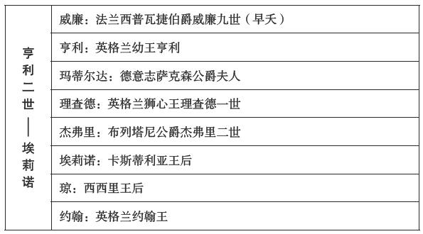 亨利·金雀花与阿基坦的埃莉诺子女列表