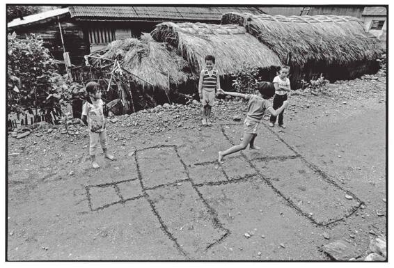 这是我第一次到南澳所拍的照片,之后,这个泰雅人部落就成了我最常造访之处。主要是因为交通方便,北回铁路就有设站,站前就是小村,再走个二十分钟,保存相当完整的上部落就处处都有好镜头了。在开工作室招生授课的那几年,我经常带学生到此外拍,逐年目击着它一步一步地舍弃传统。跳房子的泥土地已铺上水泥,茅草矮房也完全消失了。全村盖成一间比一间难看的水泥房,彼此之间毫不协调。