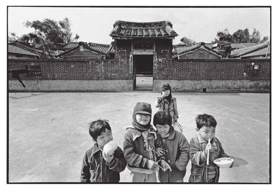 拍这张照片时,我已离开《汉声》,但只要来到鹿港,便会想起那顿饭。其实,孟嘉兄和我都曾像这些孩子一样,端着一碗饭、啃着一个大馒头四处走动。谁需要饭桌?更不需要的是餐厅。哪儿有伴,那顿饭就香。
