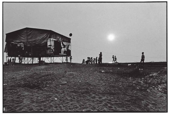 爱上摄影之后,我重游旗津,正逢一大片填海而成的工业用地准备展开建设。为了讨个吉利,营建商在动土前雇了个歌仔戏班酬神。光秃秃的地面上搭起了棚子,太阳下山后,锣鼓响起,村子虽然离得老远,还是吸引了一群奔跑而至的孩子。