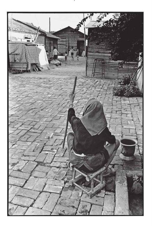 那红砖铺就的巷道、木板搭成的矮屋、缓慢的生活步调,或许与三百多年前先民屯垦时期的景况相去不远?这位老妇怕不有八九十了,却把拐杖杵得像是把关权杖一般威风,虽然满脸风霜,身形却挺得如同一尊坚守传统的塑像。