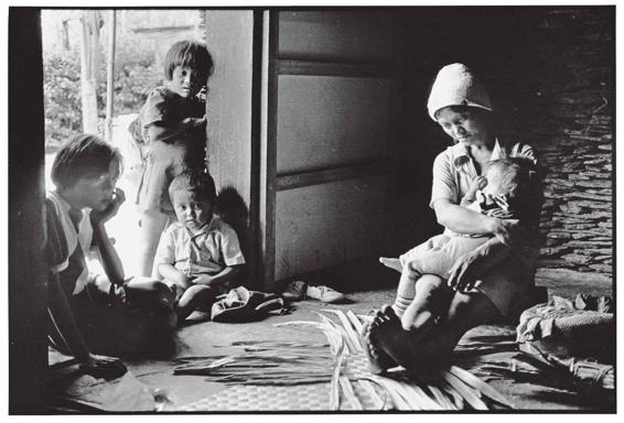 构图的正中央是一片最黑的虚无,一切之始仿佛从那里吐出,所有之终也由那儿吸纳。在始与终的时空之间,因、缘和合,便产生了一切事、物的果。拍照不也是因缘?我来到多纳,踏入这户人家、看到这位母亲;三个小孩在我束手无策时走过来。按下快门的那一刻,眼前所有的人都跟我产生了关系,成为我凝住的记忆。