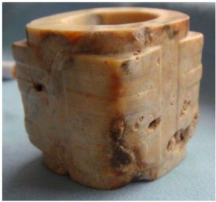 牟永抗:是的,钻孔也是当时良渚制玉工具的一个重要标本。为什么在中间留个台,而且两边的深度大体差不多?在加工的时候是钻头旋转,还是两边仅仅加压,钻头不转,加工对象转?