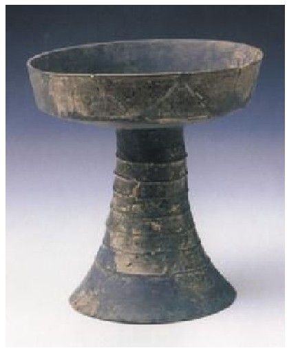 牟永抗:对,不能炊煮。它旁边有个圈,里面明显是摆东西用的,应该是神具。我们从全球的角度来看,或者缩小一点看,东亚和西亚的饮食文化就很不一样。西餐没有主食副食之分,所以西餐的餐具都是盘,大大小小的盘。我们东亚以粮食为主食,一道一道菜是副食。副食装在这些豆中,是给众多人享用的,主食则是一人一份。所以副食和主食的分离,是东亚文化的一个重要表现,也是饮食习惯上的一个特色。这些器具当然可以用在饮食上,也可以用于祭祀,所以有意把它的形状抬高,提高它的视觉水平。