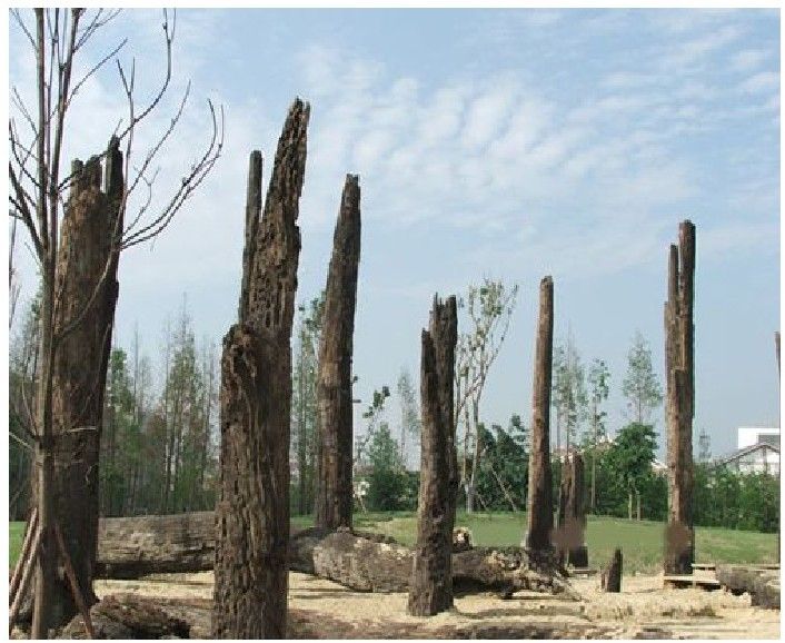 同时,根据地层出土的器物,考古学家们判定,金沙遗址属于商代晚期到春秋时期,距今大约有3000多年。那么,3000年以前的金沙是什么样子呢?随着考古工作的进行,金沙遗址中还出土了很多乌木。它的一面是条形树皮纹理、而另一面却像珊瑚一样坑坑洼洼,这又是怎样造成的呢?