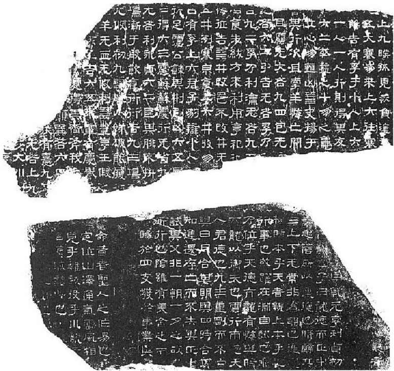 时至今日,虽然洛河早已改道,穿城而过淹没了部分遗址,但在汉魏洛阳故城之中,仍有一处名为太学的村庄。上世纪四五十年代,在太学村附近曾出土了不少刻有经文的石碑残块,经确认,这些就是文献记载中著名的东汉“熹平石经”和曹魏“正始石经”,他们都曾立于太学之中,供天下学子观览临摹。