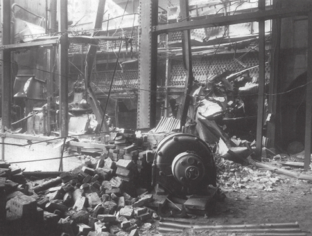 被炸房屋建筑:1、2、3、5号锅炉间,涡轮机间及给水泵间,办公室,循环排水渠,铁匠间和围墙。