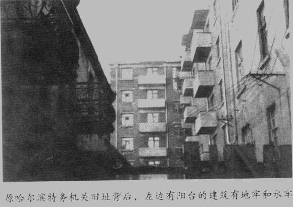 当时在场的人对突然闯进来的我们,投以惊奇的目光。当我们说明来意之后,他们便欣然做了我们的向导。“白桦寮”后面那座二层楼的地下室里,有一米左右宽的走廊,在一边排列着八个像口琴孔一般的房间,门上都带有门闩,里面的确就是地下监狱。向左最里面的房间是“水牢”。装有铁栏杆的大门紧闭着,而且上了锁。现在,其中一间做了休息室,灯光下有两位妇女在休息。