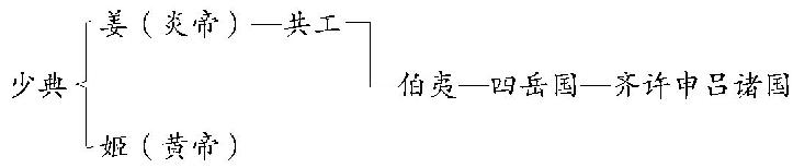 宫》,“赫赫姜嫄,其德不回”。周以姬姓而用姜之神话,则姬周当是姜姓的一个支族,或者是一更大之族之两支。根据上列记载,可得下列之表。