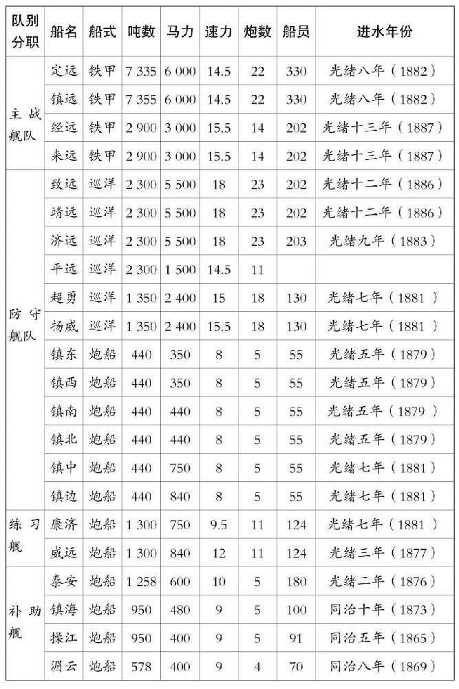 船名 船式 吨数 速力 左队一号 一等水雷 108 24 左队二号 一等水雷 108 19 左队三号 一等水雷 108 19 右队一号 一等水雷 108 18 右队二号 一等水雷 108 18 右队三号 一等水雷 108 18