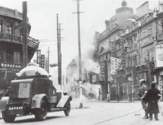 日军在一二八之战中,装甲车与步兵的配置队列。