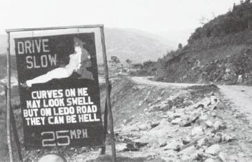 中印公路急转弯处美国工兵设立的路标——对不谙英文的中国兵来说也是一目了然。