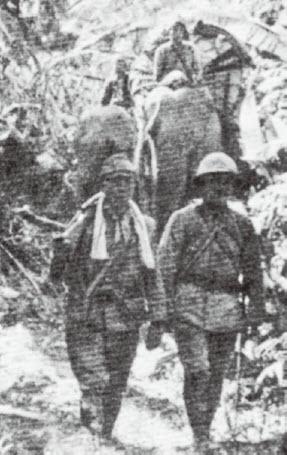 在日军中,林旺们的日子可不好过。按照日军18师团辎重兵部队的报告,由于道路崎岖艰险,使用大象运输,负重能力并没有想象的那样大,一头只能背负250-300公斤的物资,时速5公里。与中国军队在拉加苏、李家寨等地对抗时,运输兵要翻越险峻的万塔格山,大象是人背肩扛以外唯一的运输工具,一次到前线往返要两天的时间。由于战局对日军日益严峻,日军往往强行让大象背负500公斤以上的物资,结果许多大象很快出现“鞍伤”不能使用,到中国军队进攻孟关的时候,在前线的大象已经从将近100头减少到了十几头。