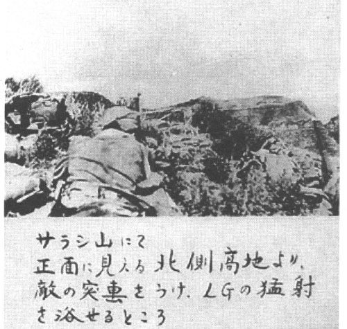 “益子挺进队”在萨拉齐山战斗的照片,怀疑为23日的战斗中摄影。
