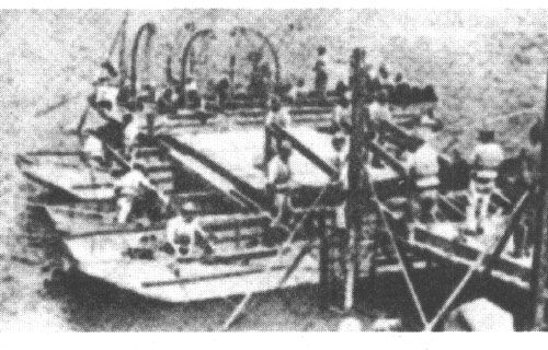 日本使用铁舟架设浮桥,在深泽战斗中被中国军队击毁。