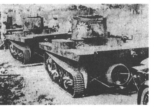 投入侦查作战损伤的一辆维克斯水陆两用战车。这辆战车和另一辆“大”战车组成“一大一小”的组合,出发侦查,遭到日军伏击,两车都被击毁,人员也遭到损失。这是该车拖回南宁待修。