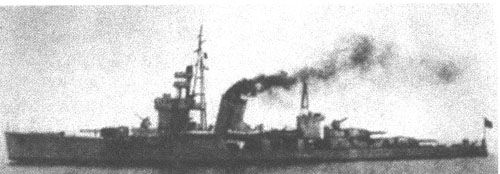 “宁海”号殉国照片之五为该舰正面,可以看出宁海舰舰长陈宏泰(此战腿部重伤)在最后时刻是在努力将该舰搁浅冲滩,以便未来有机会修复。可以看到舰体上被日军近矢弹损坏的部分。