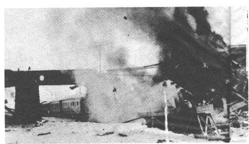 实际上日军拍摄的照片还有比上面更早的,图三就是爆炸的瞬间。也就是说,拍片者早有准备,在炸药引爆、列车横飞、浓烟升腾,别人未及出现的现场就开始连续的拍摄。