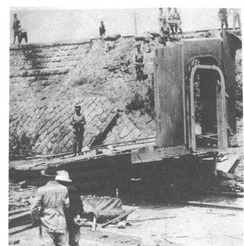 图六为同样刚刚爆炸时拍摄的照片,可以看到已经有日军人员出现,迫不及待地想检验爆炸效果了。