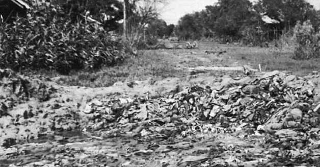 丛林中被丢弃而死的日本伤兵,大雨之后就化作累累白骨。