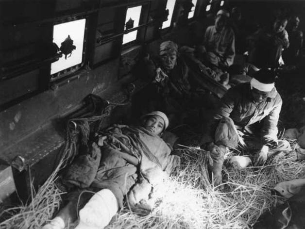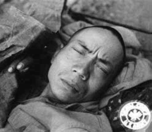 一名在孟关之战中负伤的新22师战士,医护人员用九个小时把他抬下战场,送到机场,随即被送往印度的美军医院进行手术。
