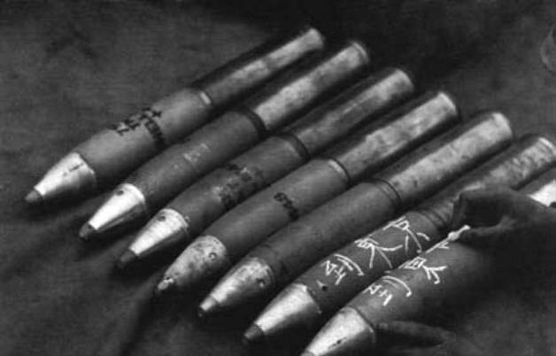 远征军战士在76毫米炮弹上写下“到东京”的字样