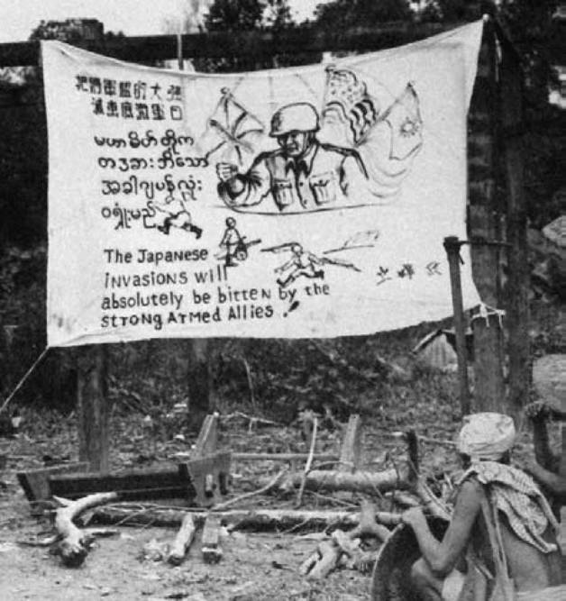 密支那—孟拱间的道路上,随处可见盟军标语。