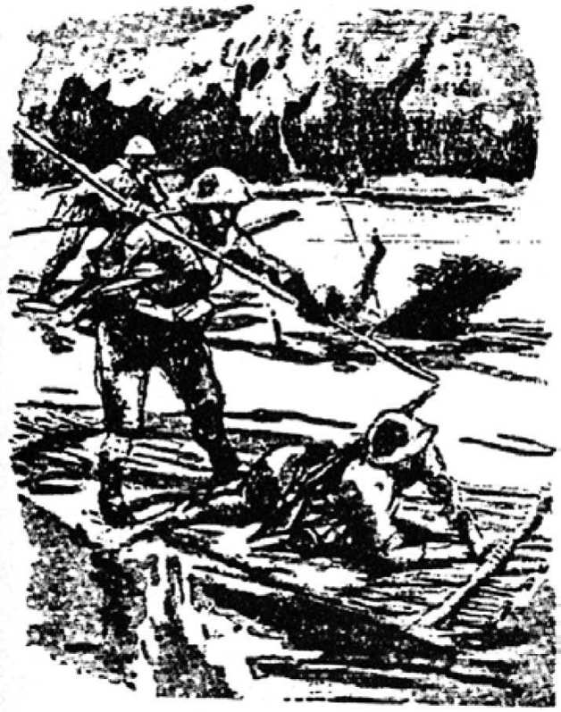 密支那日军争抢木筏,开始逃跑大竞赛(图为日军回忆录中所绘)。