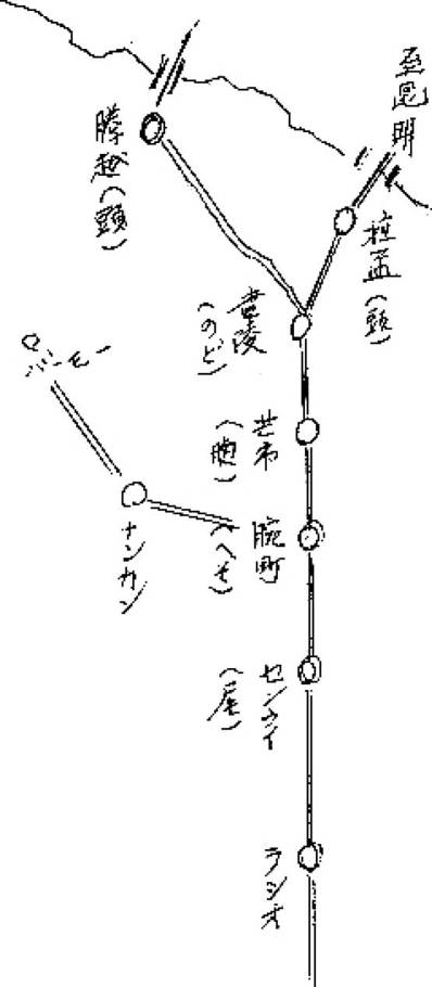 日军龙兵团会计主任石川颱一描画的“第56师团双头龙阵”。