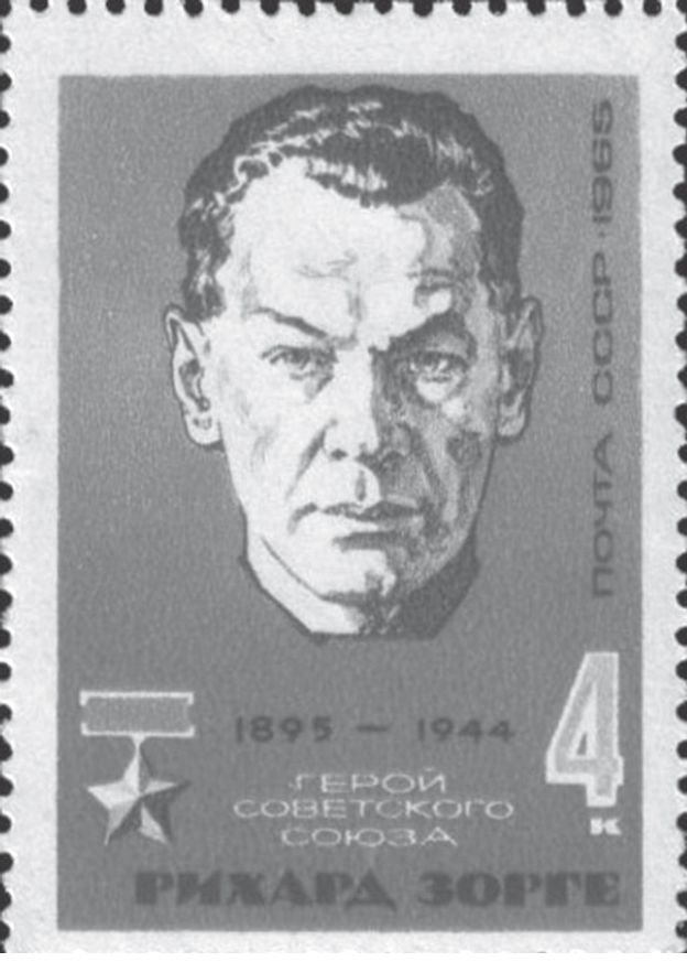 邮票中的佐尔格形象。这位德俄混血儿是20世纪最著名的苏联间谍,具有出神入化的间谍技能,为莫斯科提供了许多日方的绝密情报。