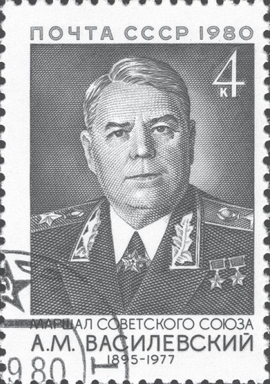 邮票上的华西列夫斯基元帅。华西列夫斯基历任苏军总参谋长、远东军总司令,在他任职期间,几乎经历了苏德战争中的所有重大战役。