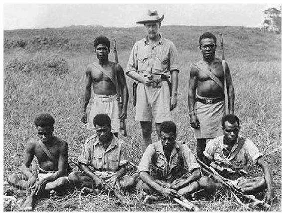 后排正中为“海岸监视者”克里门斯,其余都是拥护他的土著侦察兵。惊心动魄的敌后情报工作,已经把他们的神经锻炼得如同钢筋一样粗壮