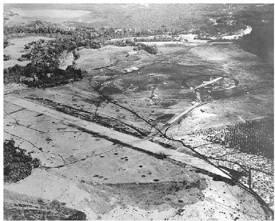 亨德森机场鸟瞰。机场周围的弹坑和交战痕迹清晰可见。不过在“海上蜜蜂”的全力维护下,面对攻击,机场也算做到了富贵不能淫,威武不能屈