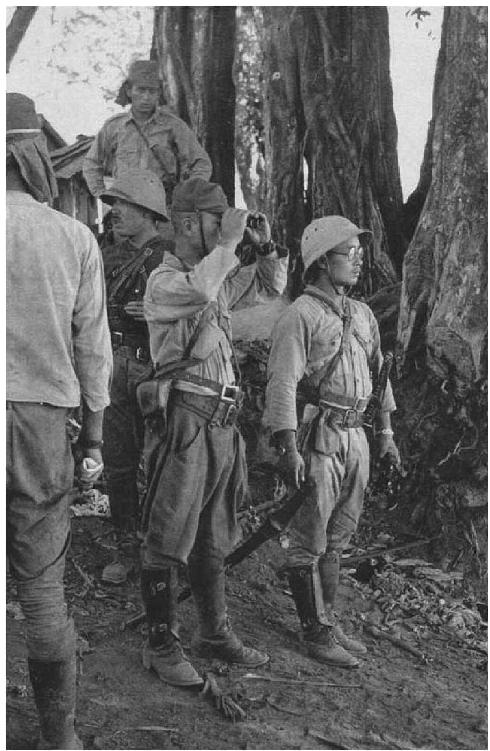 菲律宾战役期间,日第四师团军官在观察科雷希多要塞。日本陆军在太平洋战争初期确实打得出色,他们开赴瓜岛的本意也只是要补一下洞,没想到一上来就漏了天坑