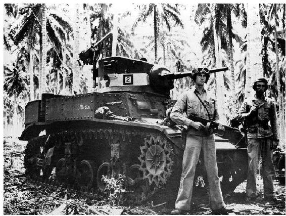 两名陆战队员正在M2A4轻型坦克前担任警戒。陆战队非常重视培养士兵对部队的感情,这种巧妙培养起来的感情,有效增强了士兵的勇敢和献身精神,也为陆战队赢来了“硬骨头”的声誉