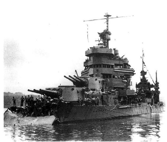 “明尼阿波利斯”号,舰艏被鱼雷打掉后,就成了这副糟心样子