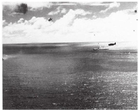 TBF鱼雷机正在向“瑞鹤”号发动攻击。事实证明,缺乏舰载机保护的航母在战场上没有存在价值