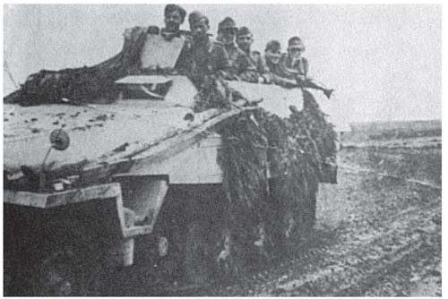 1943年11月,尼科波尔桥头堡,搭乘一辆装甲运兵车的德军装甲掷弹兵。