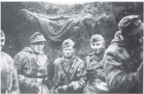 我们也没有太多的时间。部队再次进行了重组,轻装排的佩龙耶被调入我们排。随后,军士长过来,告诉瓦利亚斯、弗里茨•哈曼和我,我们现在可以在衣袖上缝上迟到的第二道条纹了。这一提升意味着我们的军饷也得到了一些提高。所有人都期盼我们能请大家喝一杯,于是我很高兴地发现自己还留着一瓶杜松子酒,这还是上次分发口粮时配发给我们的。
