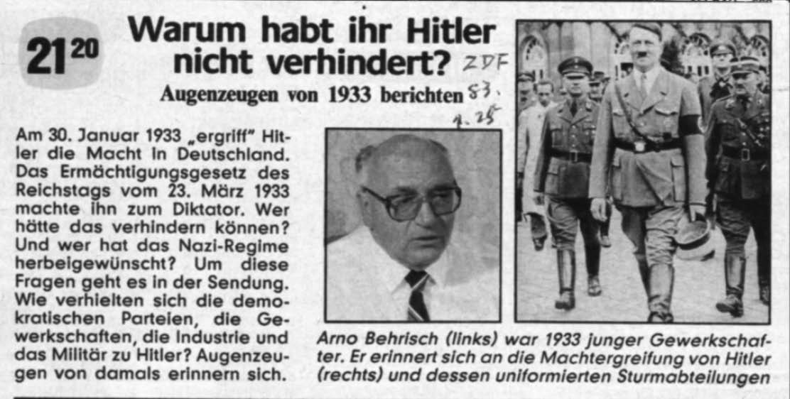 1983年1月25日,德国电视二台节目《为什么你们没有阻止希特勒?》