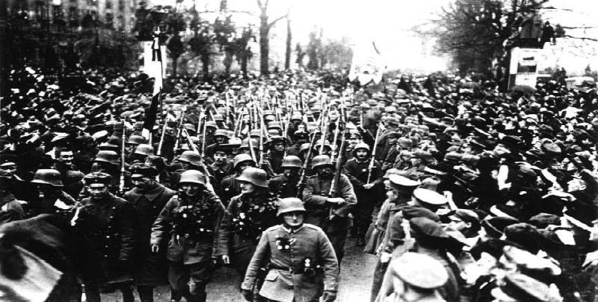 第一次世界大战结束时(1918年12月)秩序井然撤回国内的德军,在柏林街头受到群众夹道欢迎。